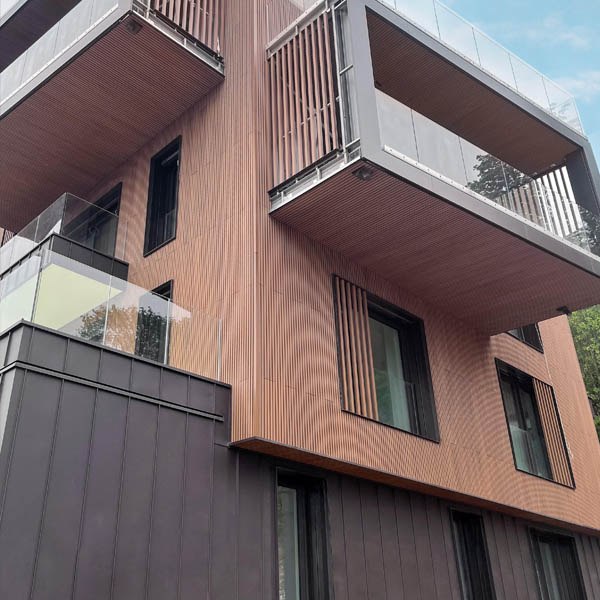 El revestimiento de composite es la solución ideal para quienes desean un acabado moderno y altamente resistente. Cada panel combina fibras naturales y polímeros de alta calidad, ofreciendo un aspecto similar a la madera pero con mayor durabilidad frente a la intemperie. Nuestros revestimientos de composite aprovechan al máximo los recursos, garantizando un material reciclable, de bajo mantenimiento y con un excelente comportamiento en exteriores.
